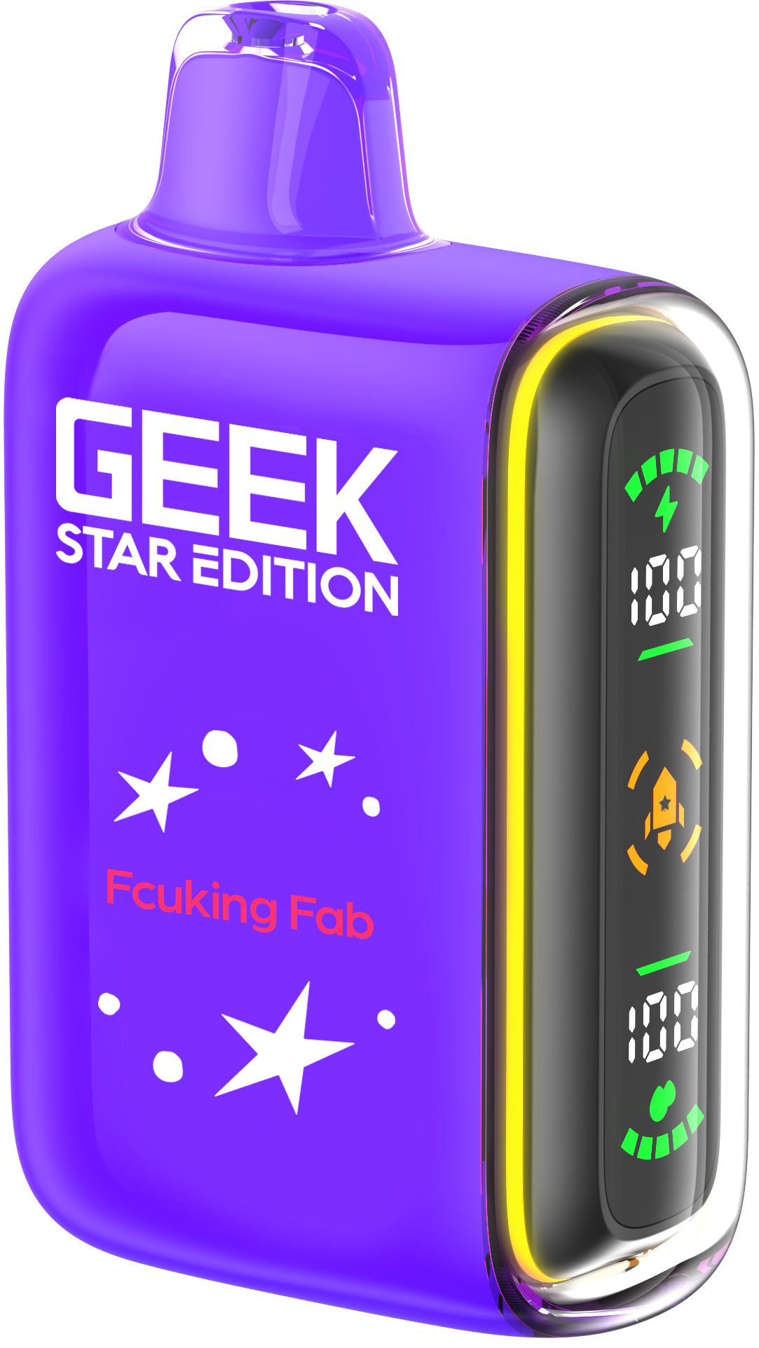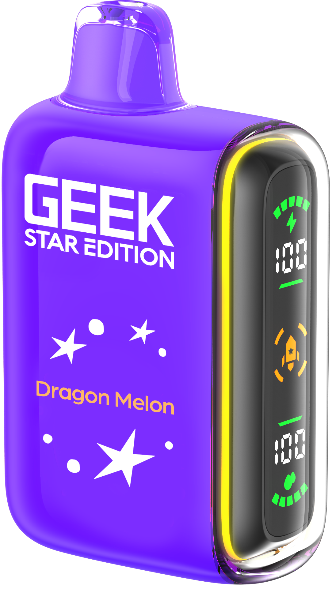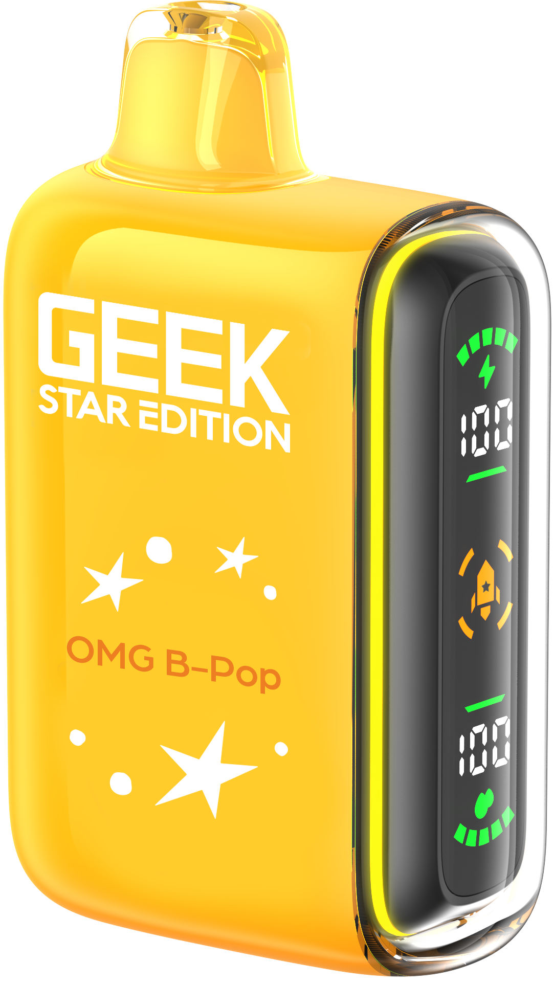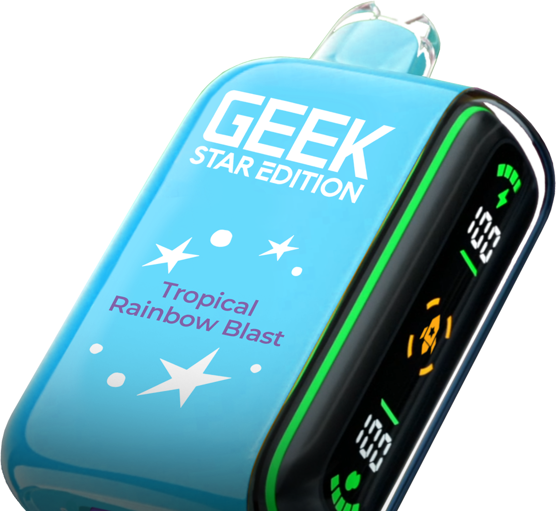 Geek Star Edition 25K is a high-performance disposable vape designed for those who want control over their vaping intensity. It features a unique dual-mode system that allows you to switch between a long-lasting "Regular Mode" (up to 25,000 puffs) and a high-power "Pulse Mode" (up to 15,000 puffs) via a toggle switch at the bottom. The device is famous for its "capsule-style" full LED screen on the side—a first for disposables—which displays real-time battery and e-liquid levels alongside engaging cosmic animations.