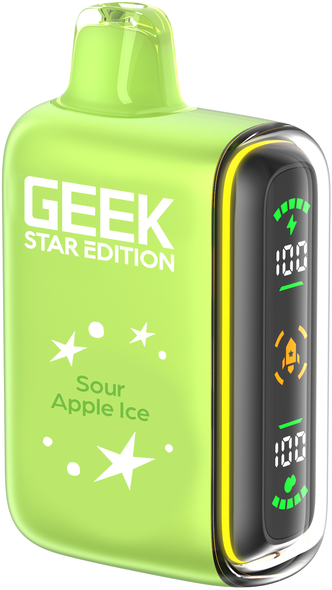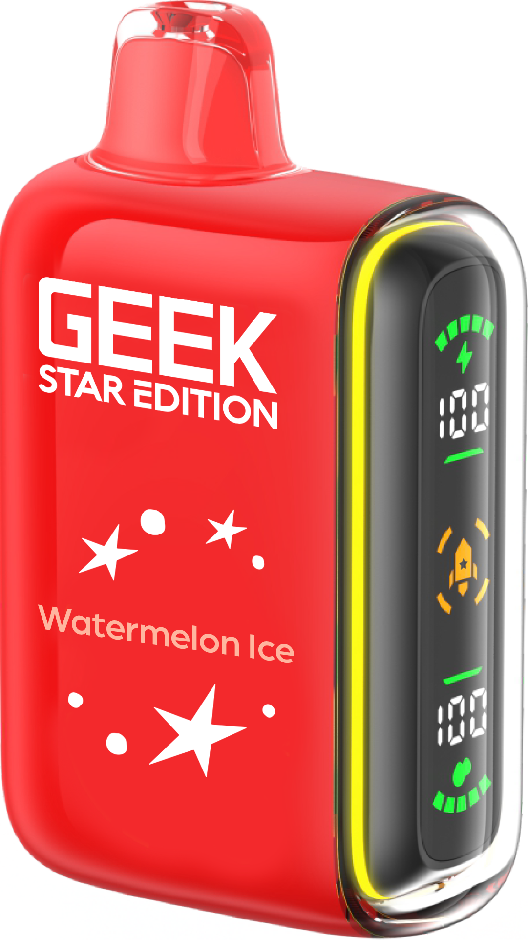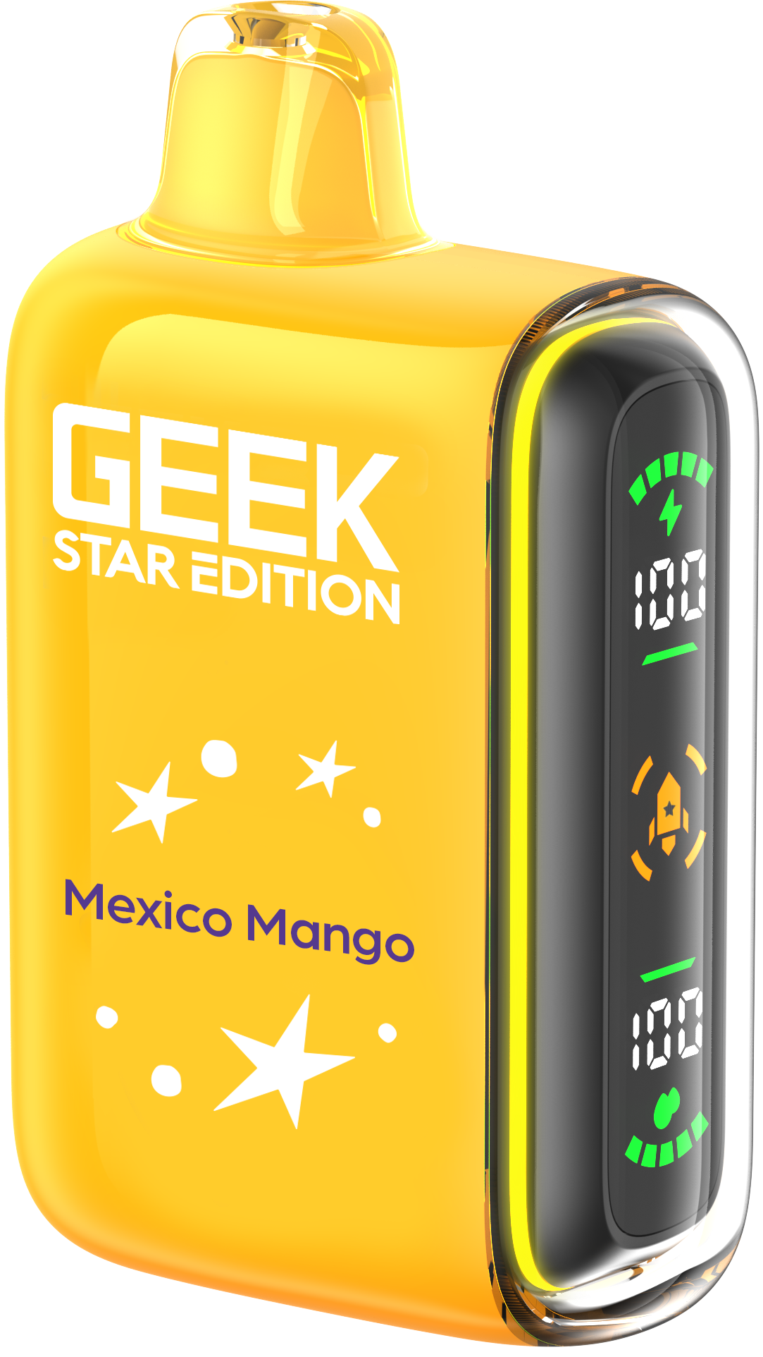 Geek Star Edition 25K is a high-performance disposable vape designed for those who want control over their vaping intensity. It features a unique dual-mode system that allows you to switch between a long-lasting "Regular Mode" (up to 25,000 puffs) and a high-power "Pulse Mode" (up to 15,000 puffs) via a toggle switch at the bottom. The device is famous for its "capsule-style" full LED screen on the side—a first for disposables—which displays real-time battery and e-liquid levels alongside engaging cosmic animations.
