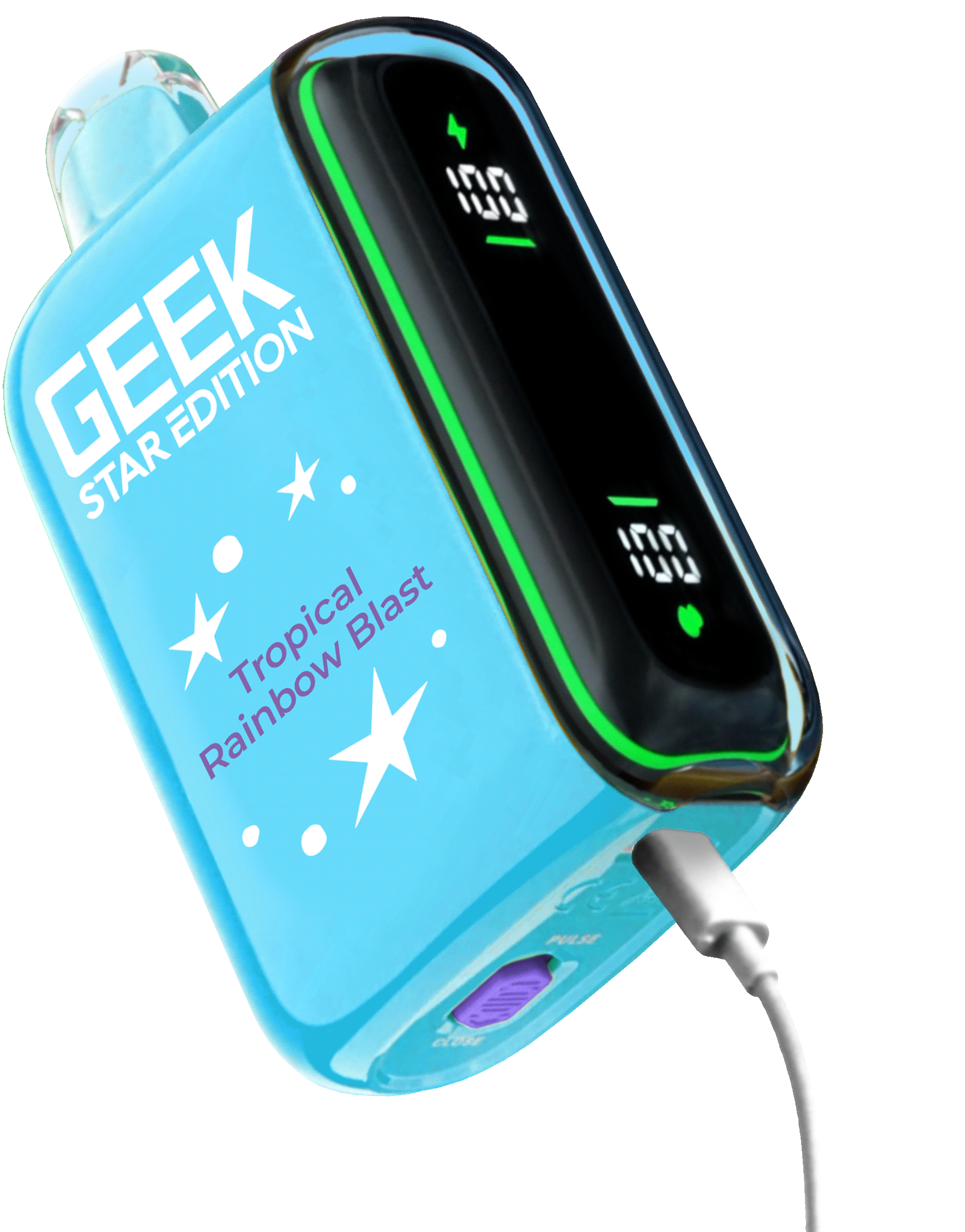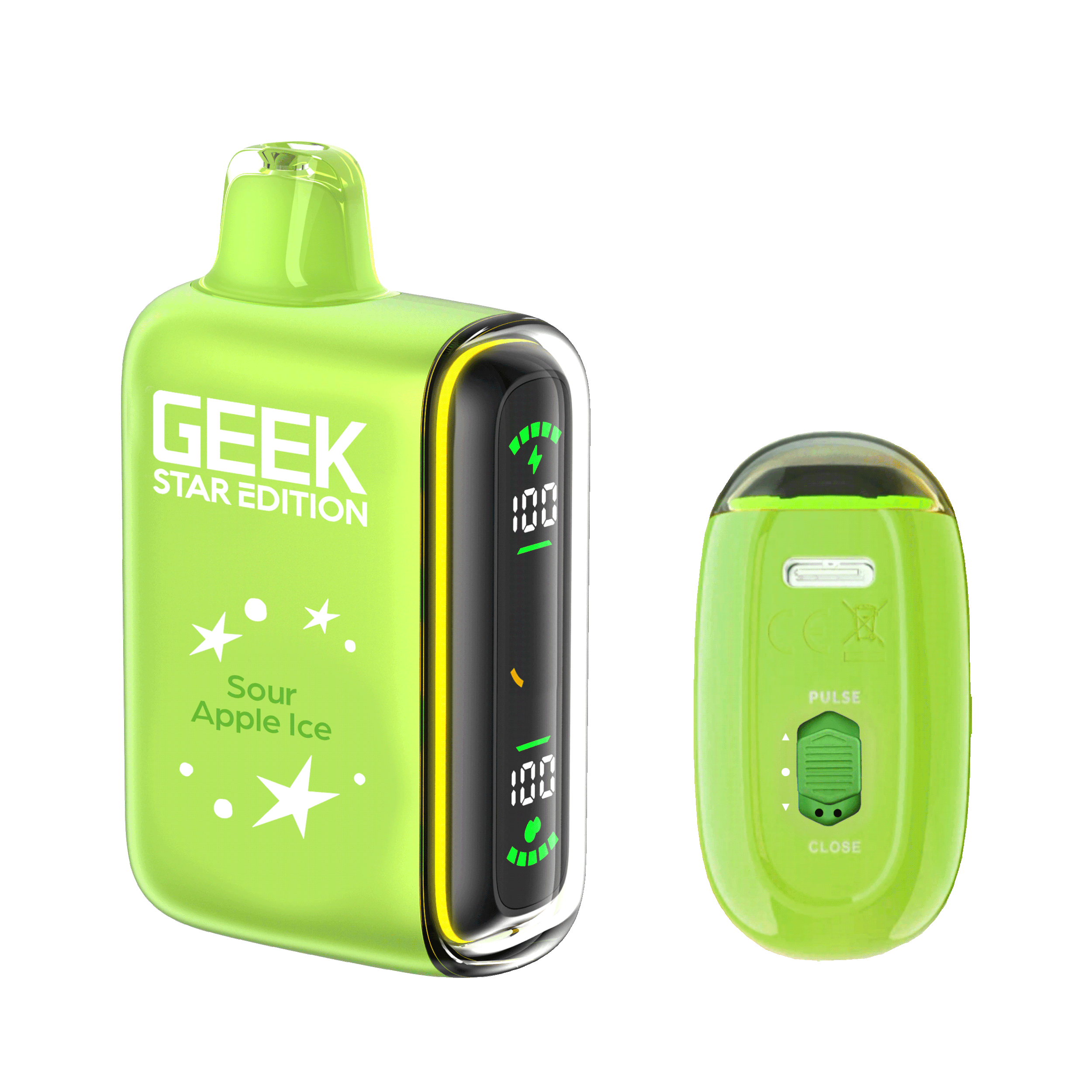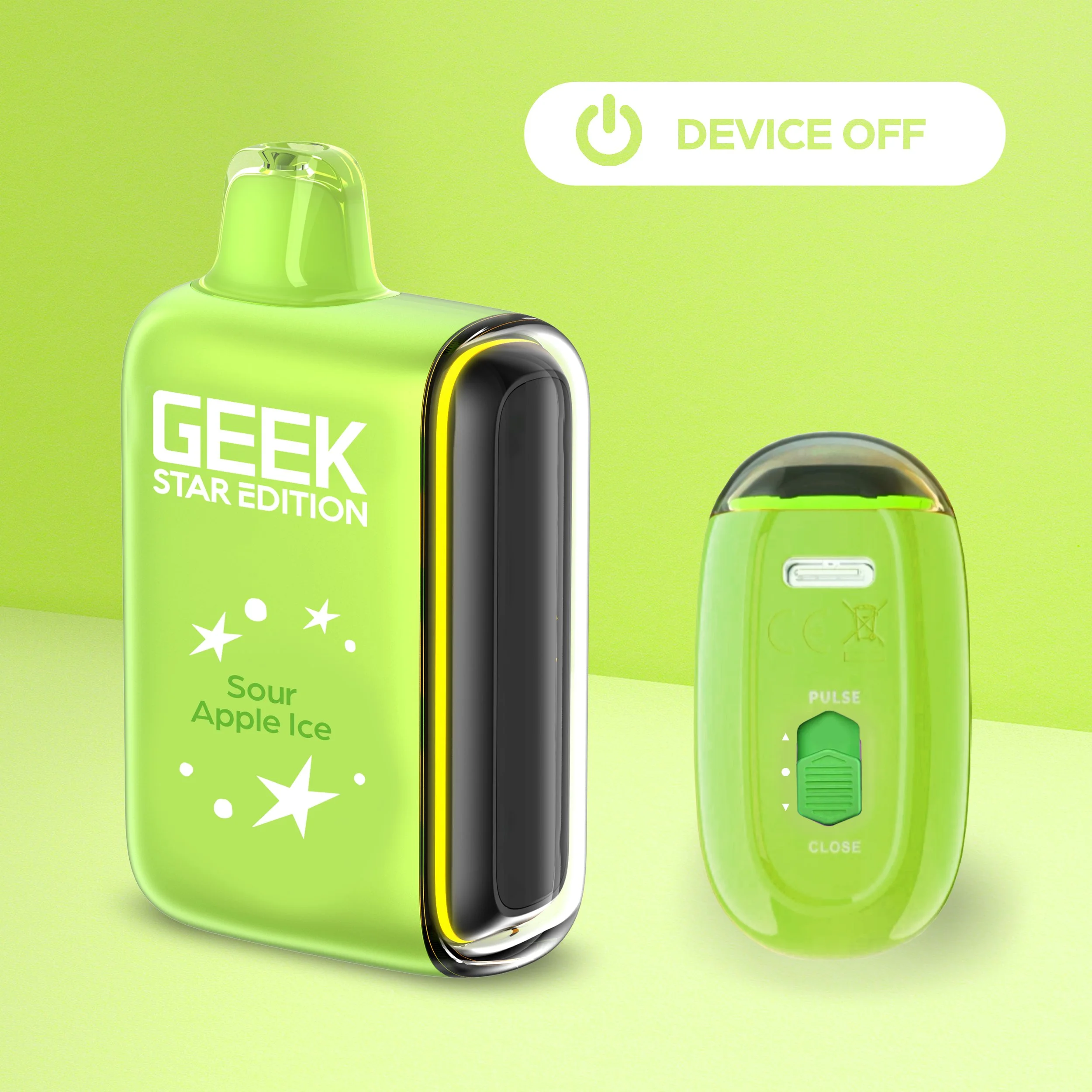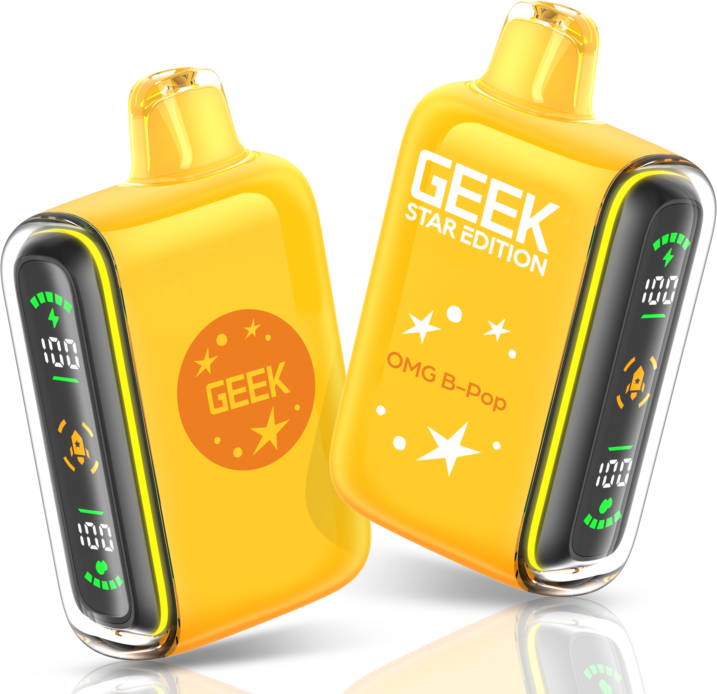 Geek Star Edition 25K is a high-performance disposable vape designed for those who want control over their vaping intensity. It features a unique dual-mode system that allows you to switch between a long-lasting "Regular Mode" (up to 25,000 puffs) and a high-power "Pulse Mode" (up to 15,000 puffs) via a toggle switch at the bottom. The device is famous for its "capsule-style" full LED screen on the side—a first for disposables—which displays real-time battery and e-liquid levels alongside engaging cosmic animations.