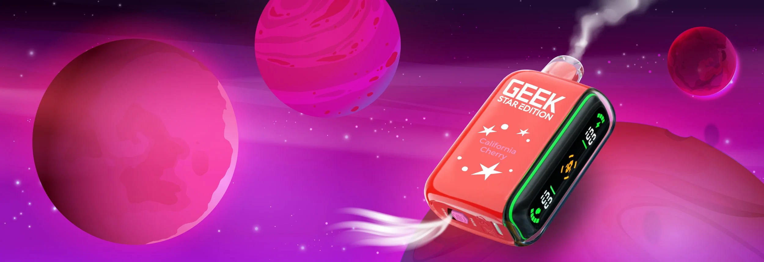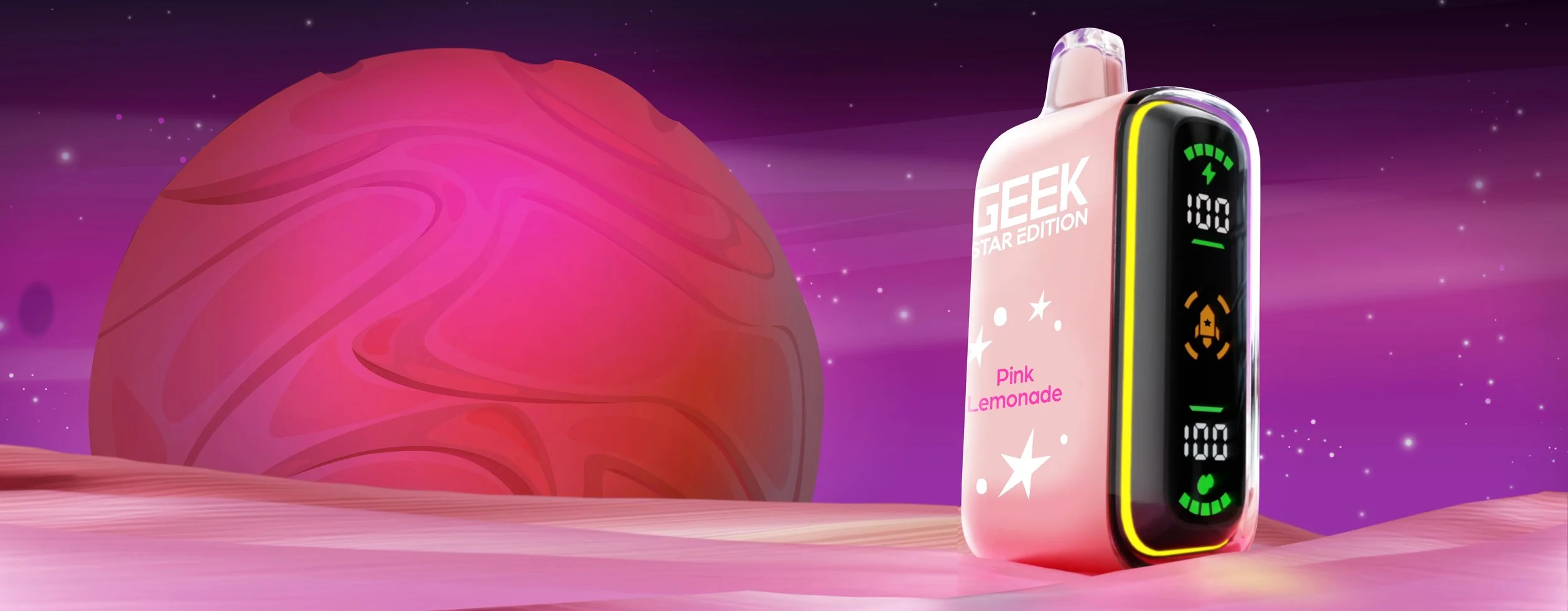 Vibrant lights fade across the side of Geek Star Edition 25K as you vape, turning every draw into a luminous, stellar experience.