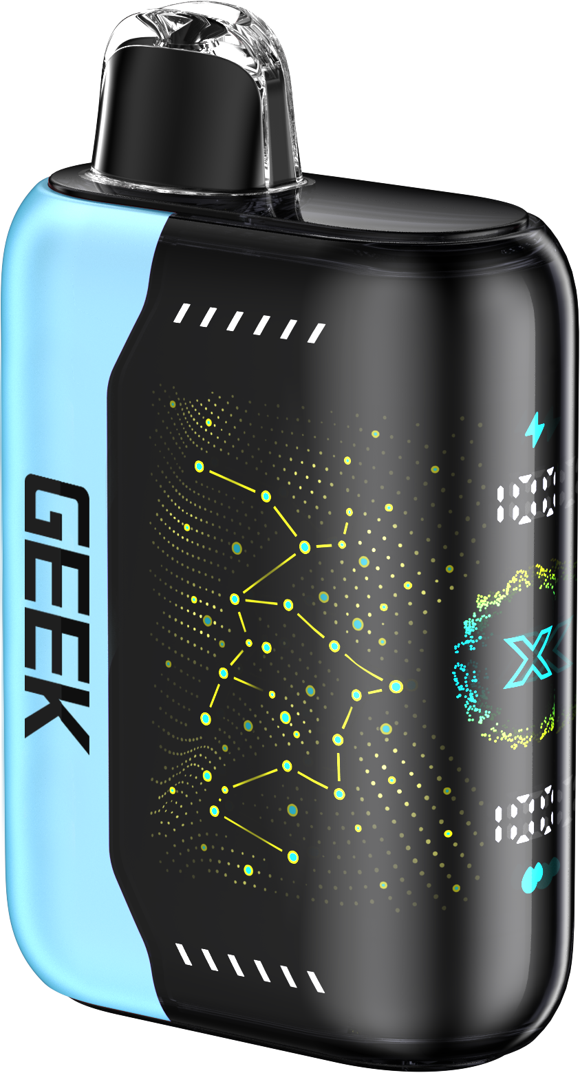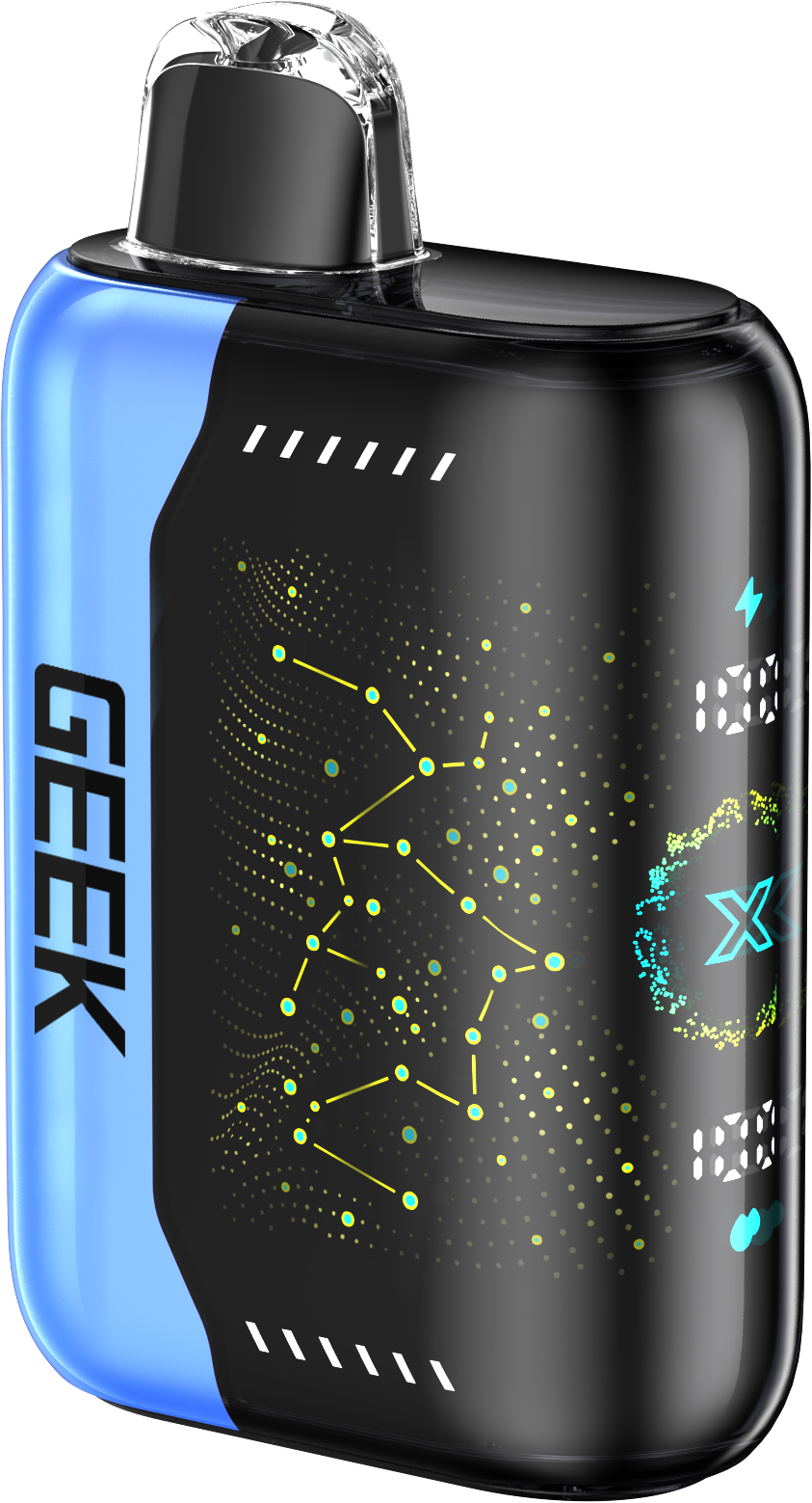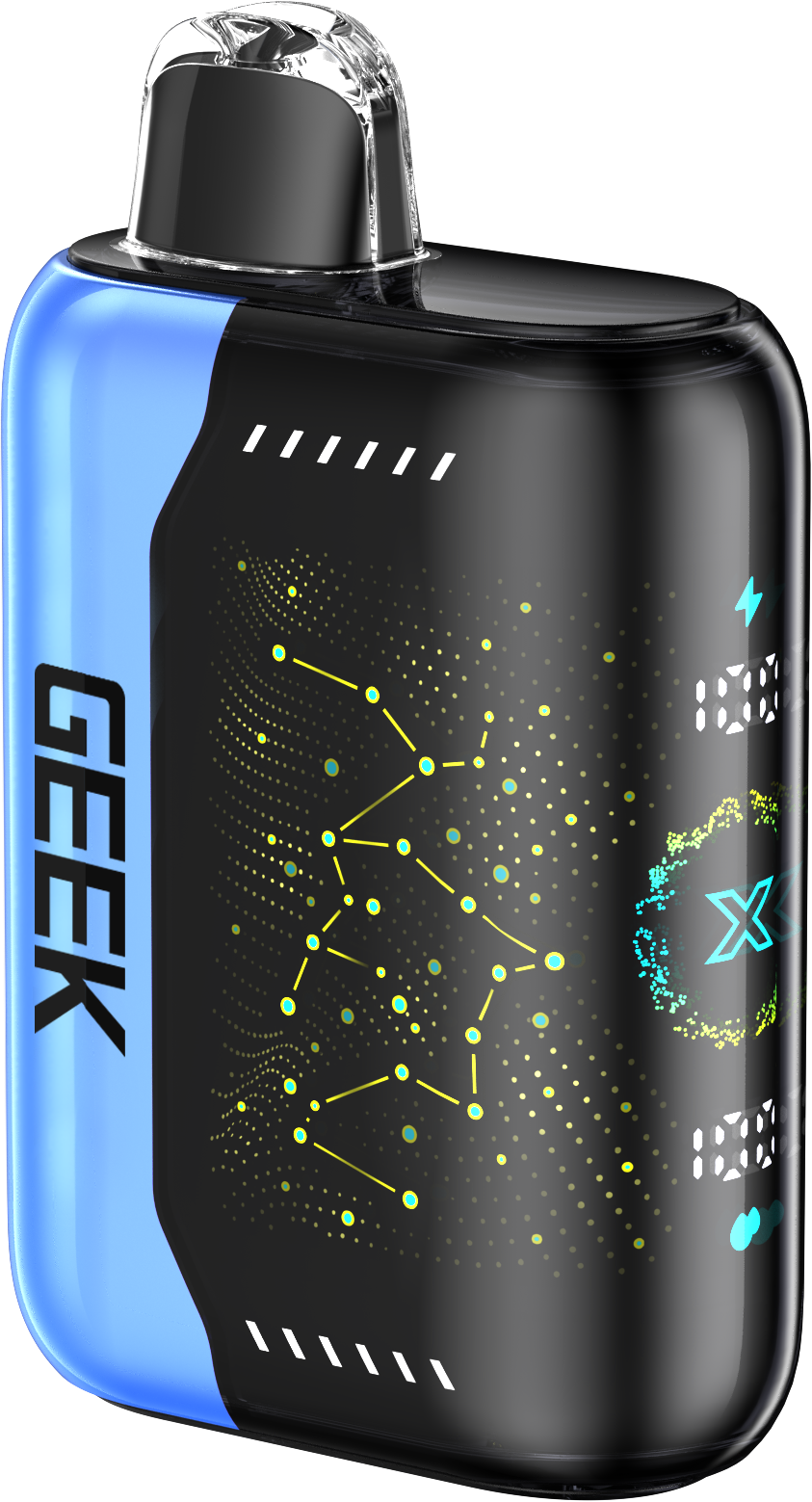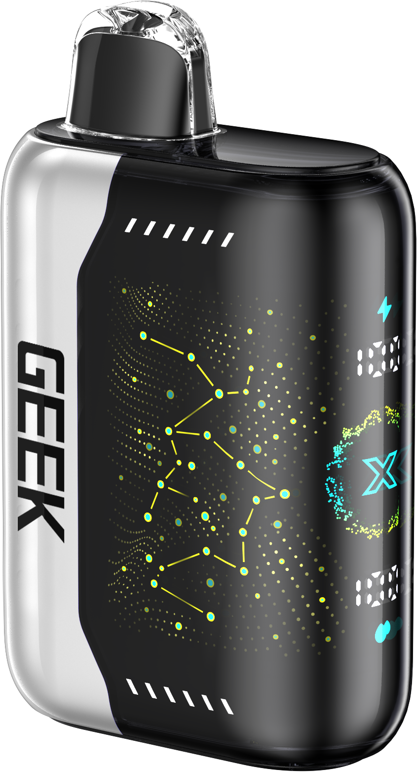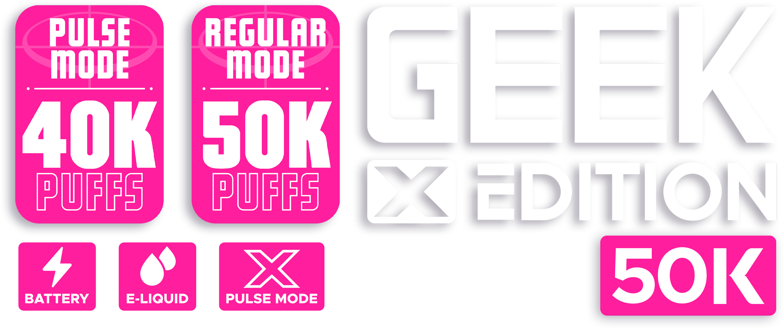 The Geek X Edition 50K is a high-performance disposable vape designed for those who want control over their vaping intensity. It features a unique dual-mode system that allows you to switch between a long-lasting "Regular Mode" (up to 50,000 puffs) and a high-power "Pulse Mode" (up to 40,000 puffs) via a toggle switch at the bottom. The device is famous for its full LED screen on the side—a first for disposables—which displays real-time battery and e-liquid levels alongside engaging cosmic animations.