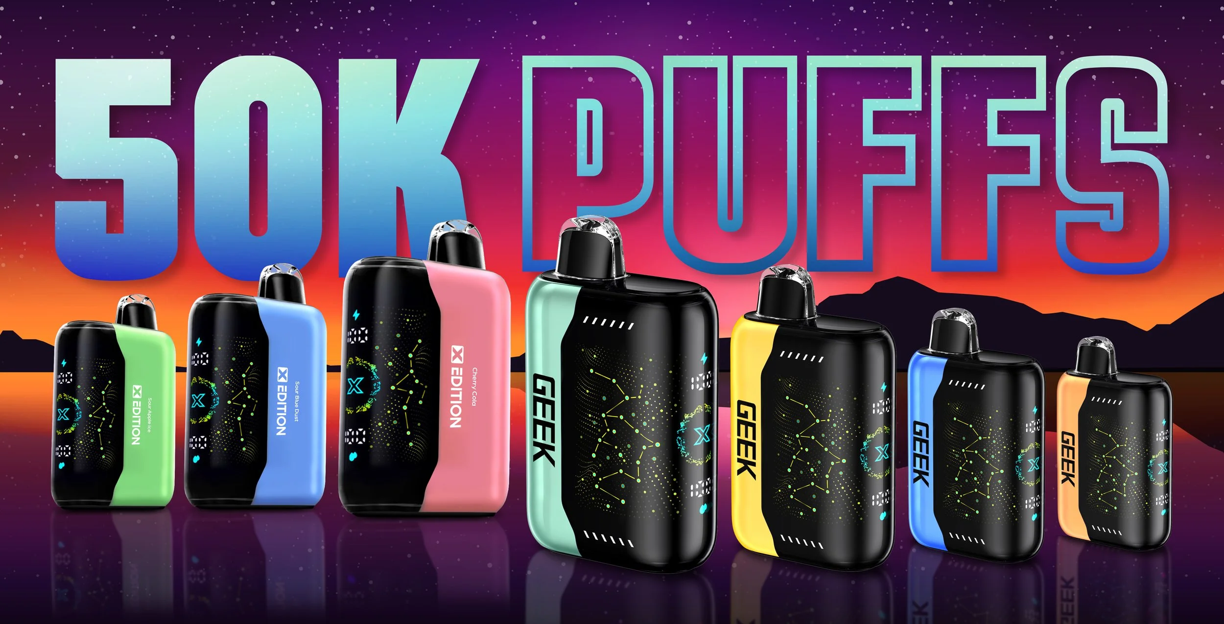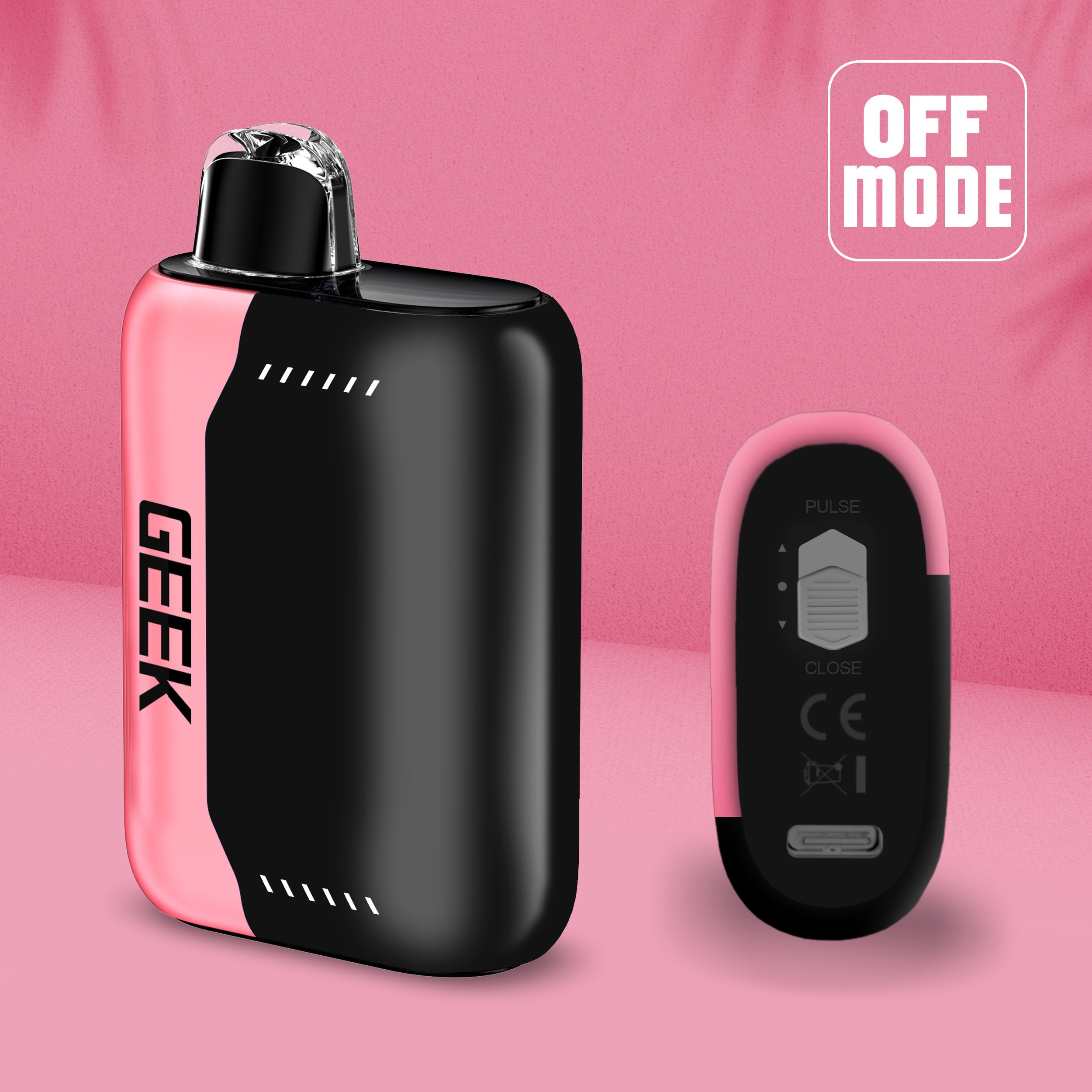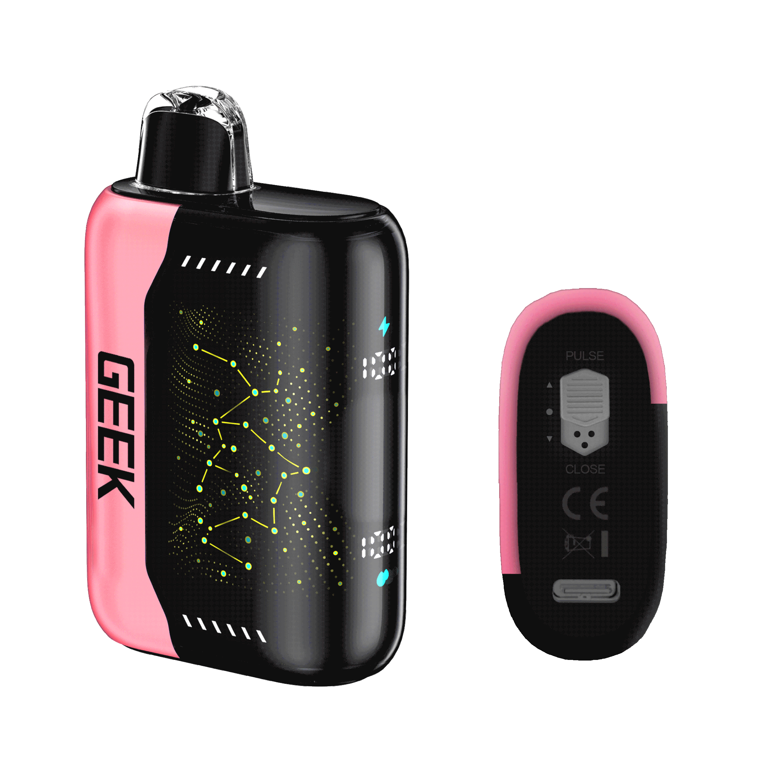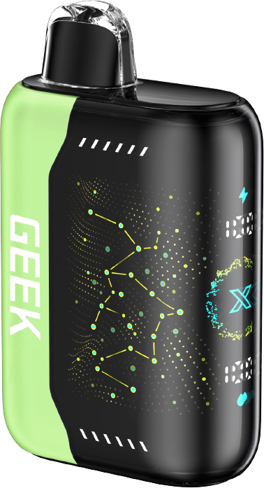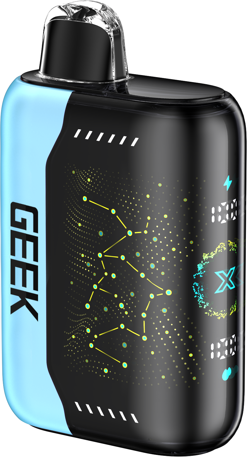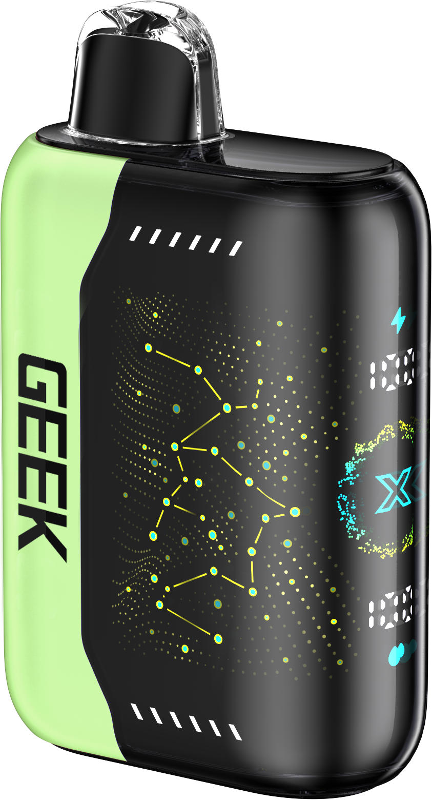 The Geek X Edition 50K is a high-performance disposable vape designed for those who want control over their vaping intensity. It features a unique dual-mode system that allows you to switch between a long-lasting "Regular Mode" (up to 50,000 puffs) and a high-power "Pulse Mode" (up to 40,000 puffs) via a toggle switch at the bottom. The device is famous for its full LED screen on the side—a first for disposables—which displays real-time battery and e-liquid levels alongside engaging cosmic animations.
